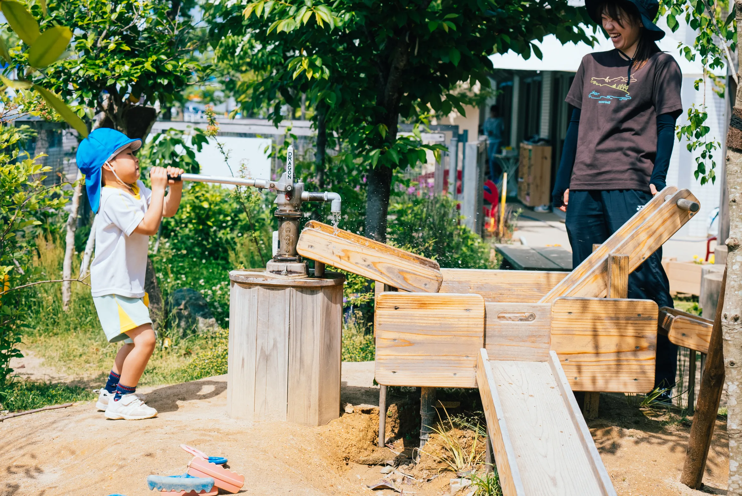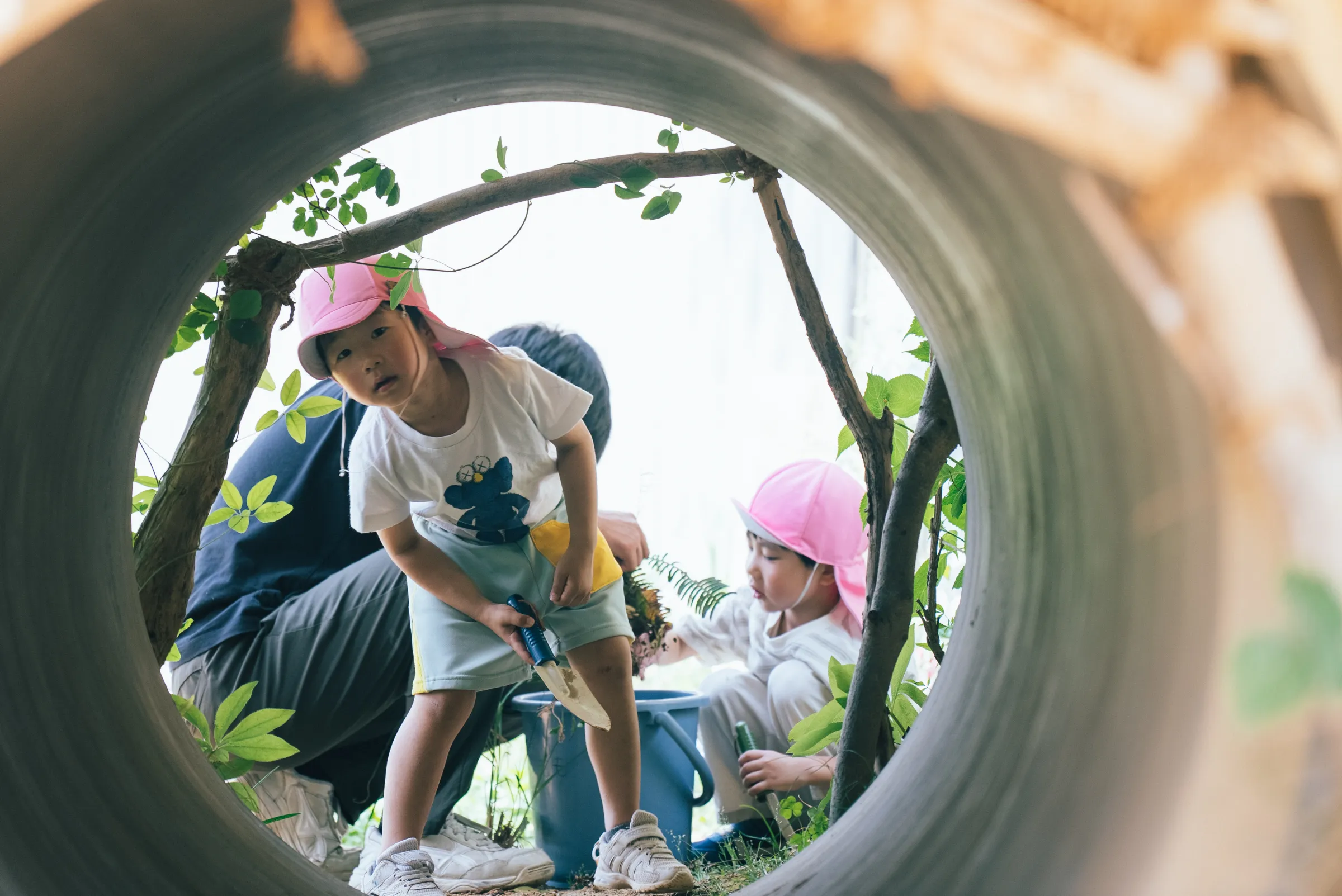 子どもたちが大きく広い園庭の中での遊びを通して、自然の不思議さ・面白さ・美しさに出会う空間をつくるプロジェクトです。