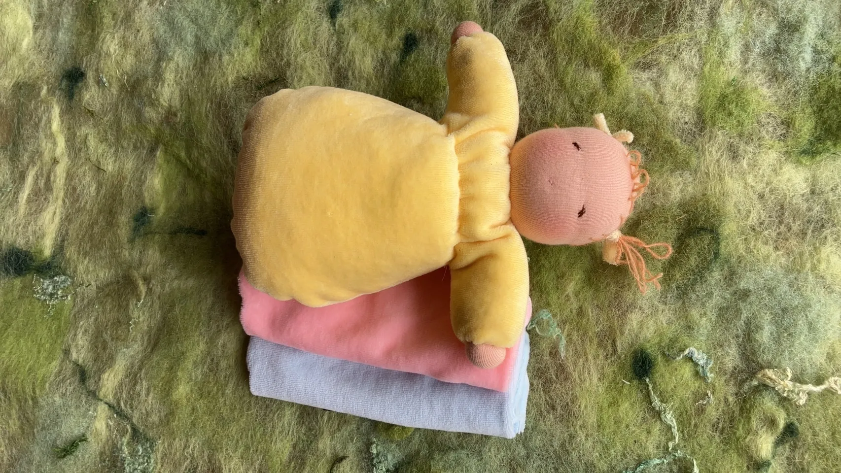 | 持ち物 | 針、白糸、糸切りハサミ ☆ピンク、水色、黄色より事前にお選びください。 ☆ ある程度作ってあります。 目口、髪の毛、服を着せる等、仕上げをしていきます。 |